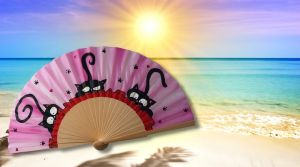 Een prachtige collectie handgetekende en handbeschilderde natuurlijke zijden waaiers.
