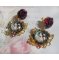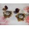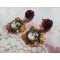 Voici des boucles d’oreilles avec des cabochons Loupes où l’on peut voir une jeune femme avec des roses.