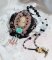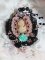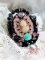 J’ai positionné sur une base en dentelle Noire également très ancienne un cabochon représentant une femme en corsage avec des fleurs.