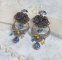 Pour donner plus de mouvements, j’ai monté des pendants avec des perles rondes en pierre de gemme de différentes tailles : la Sodalite avec des toupies Bleu Zircon et Light Smoked Topaz de qualité AB2X à laquelle s’ajoute des calottes filigranées et rondelles en forme de fleur en métal.